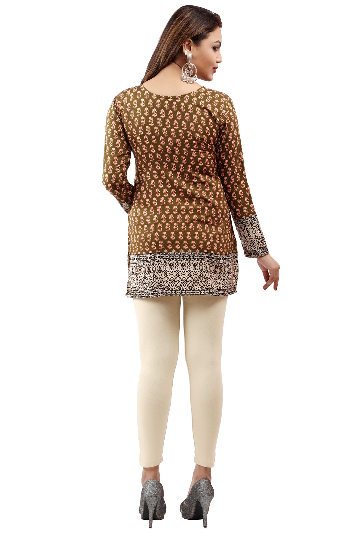 Enhance your ethnic wardrobe with this elegant green short kurti, adorned with subtle block prints and intricate patterns on the neckline, cuffs, and hemline. Combining traditional design with modern comfort, this kurti offers a flattering fit—perfect for everyday wear, office styling, or festive occasions.