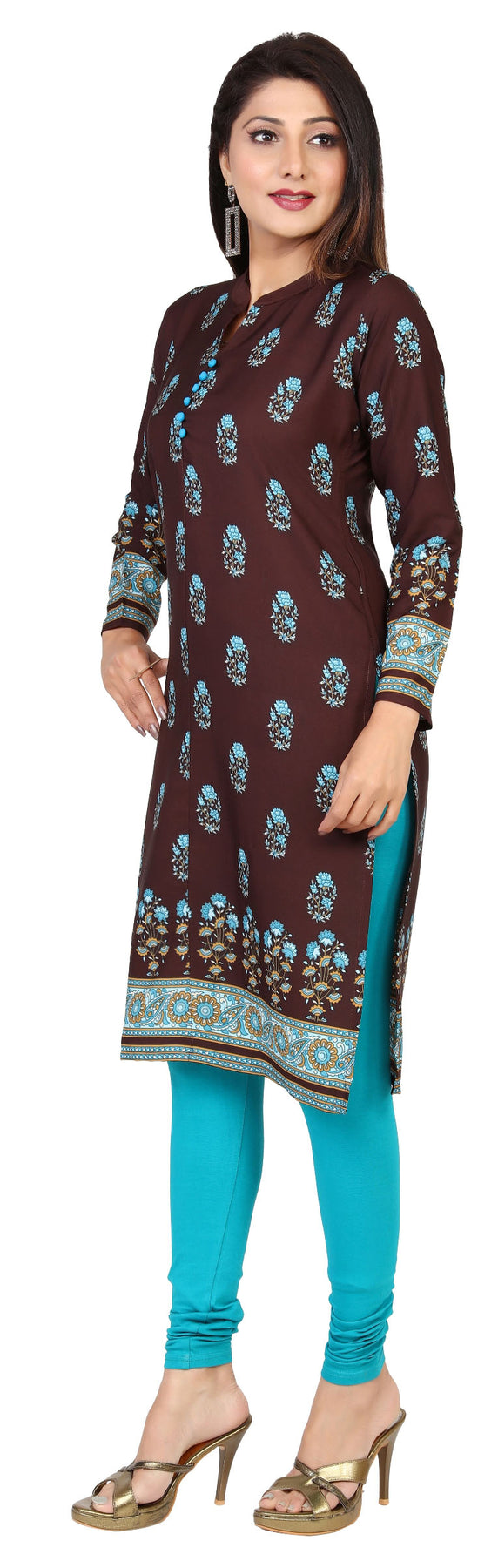 Indian Kurtis for Women Long Tunic Kurta Tops (Chocolate)