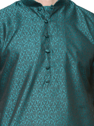 Men's Jacquard Silk Kurta Pajama India Clothing (Green)