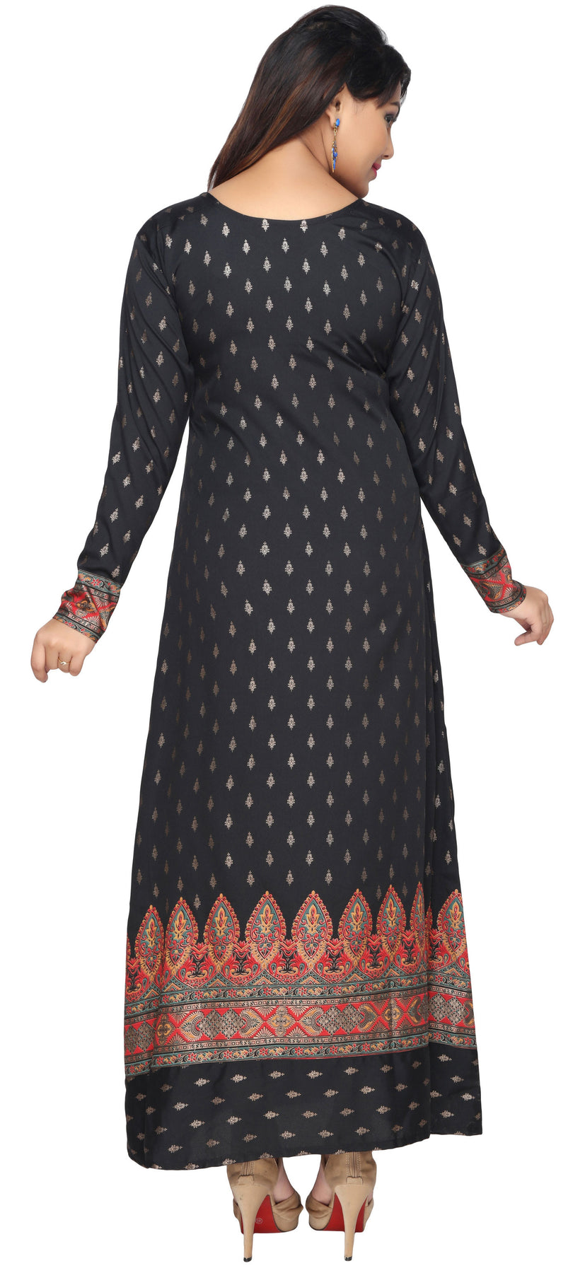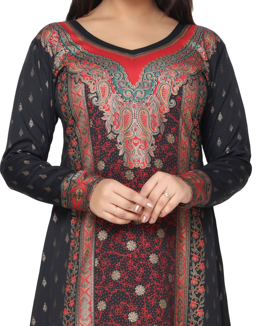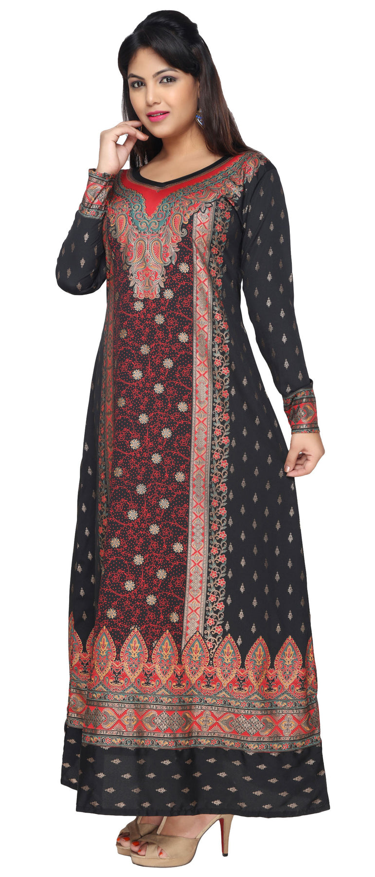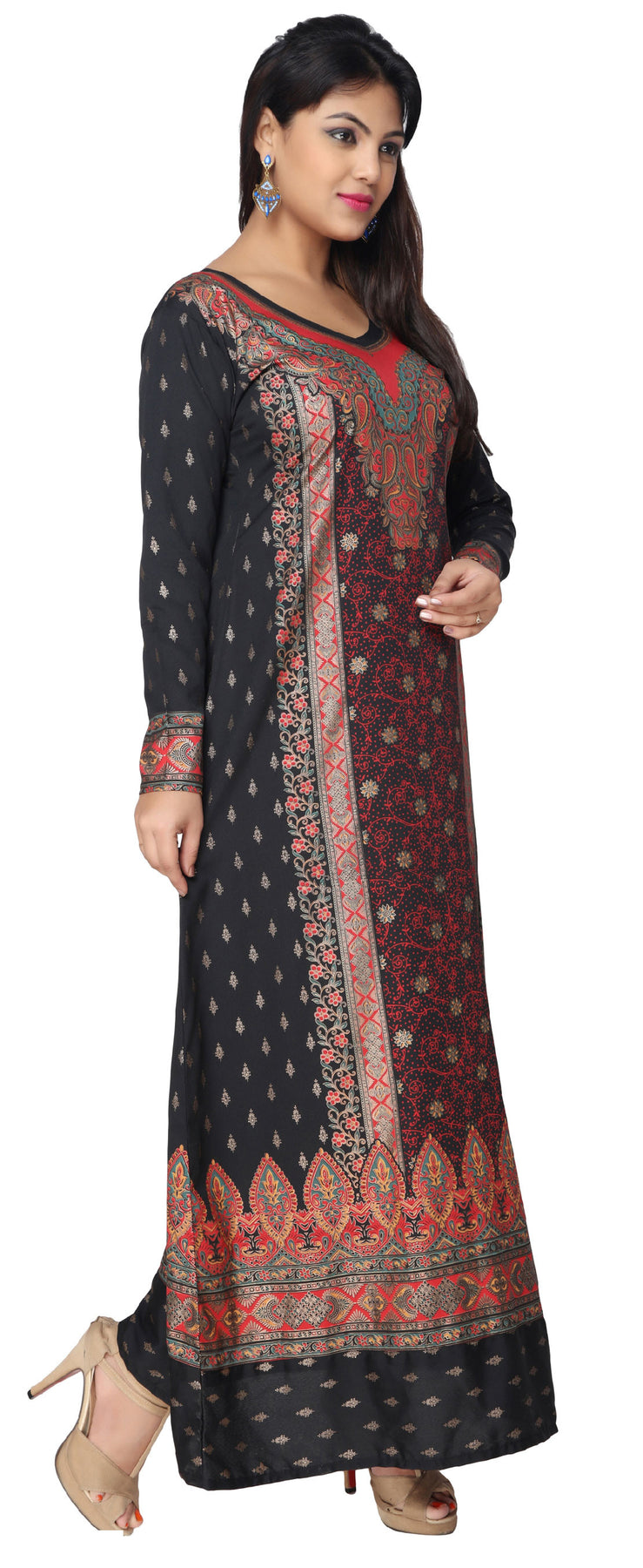 Printed Womens Caftan Long Evening Dress (Black-Red)