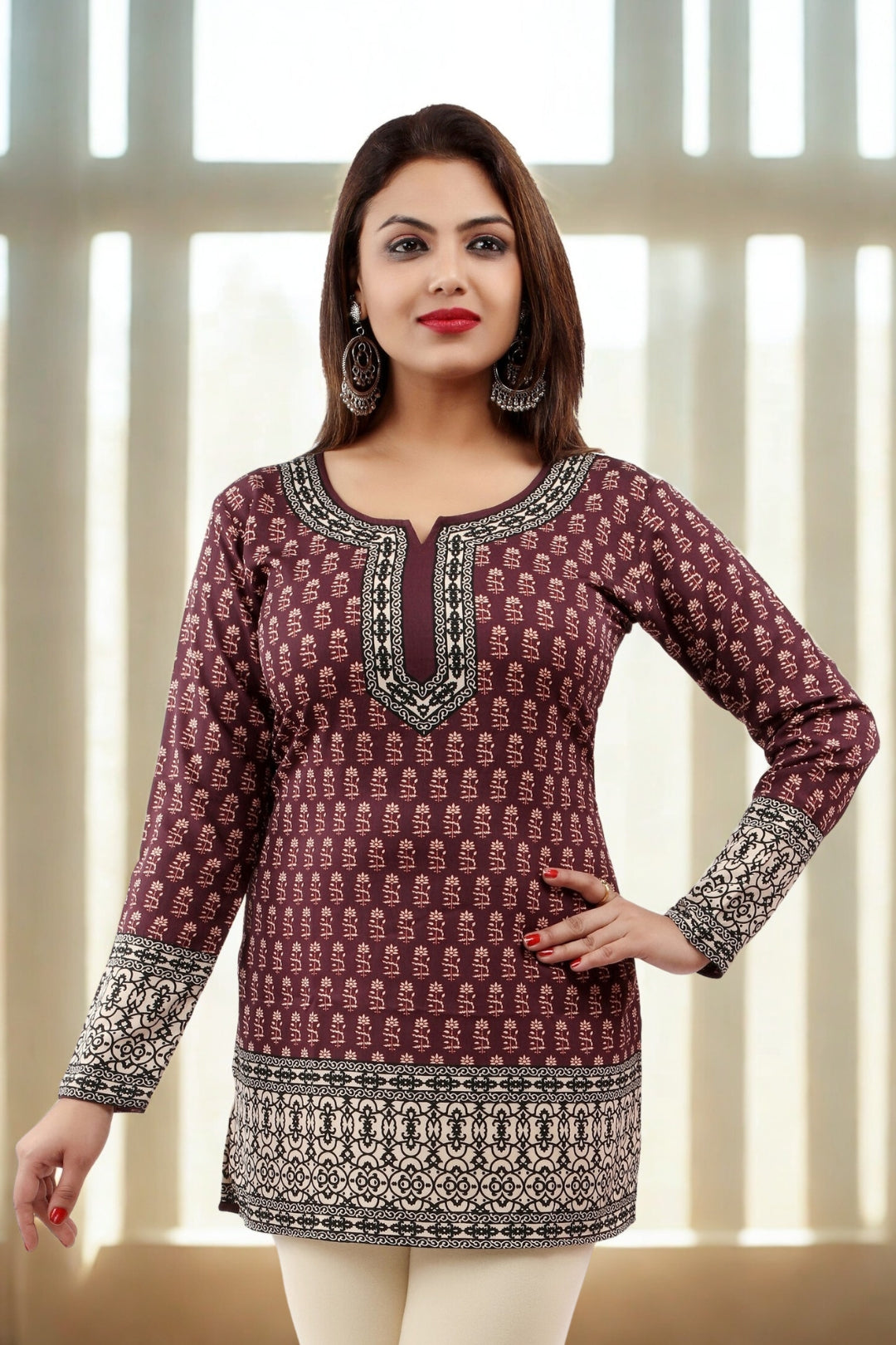 Stylish Brown India Tunic Tops - Trendy Ethnic Wear for Women