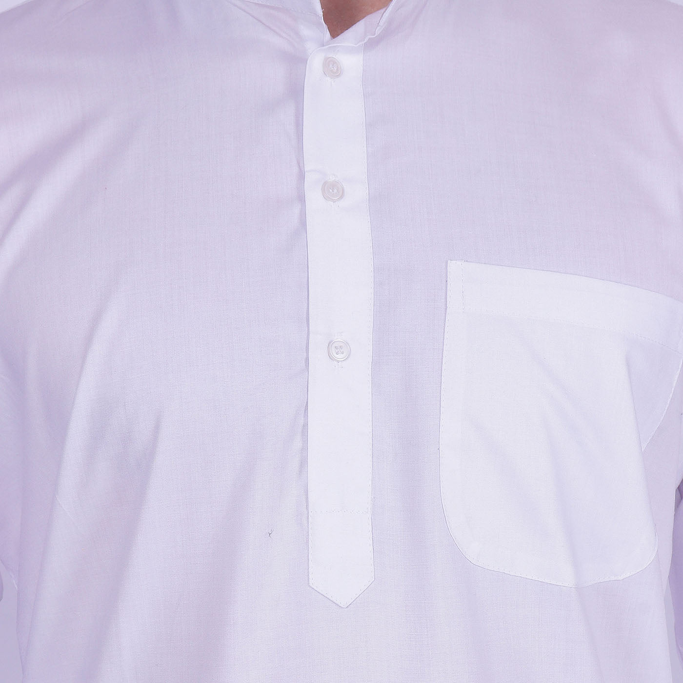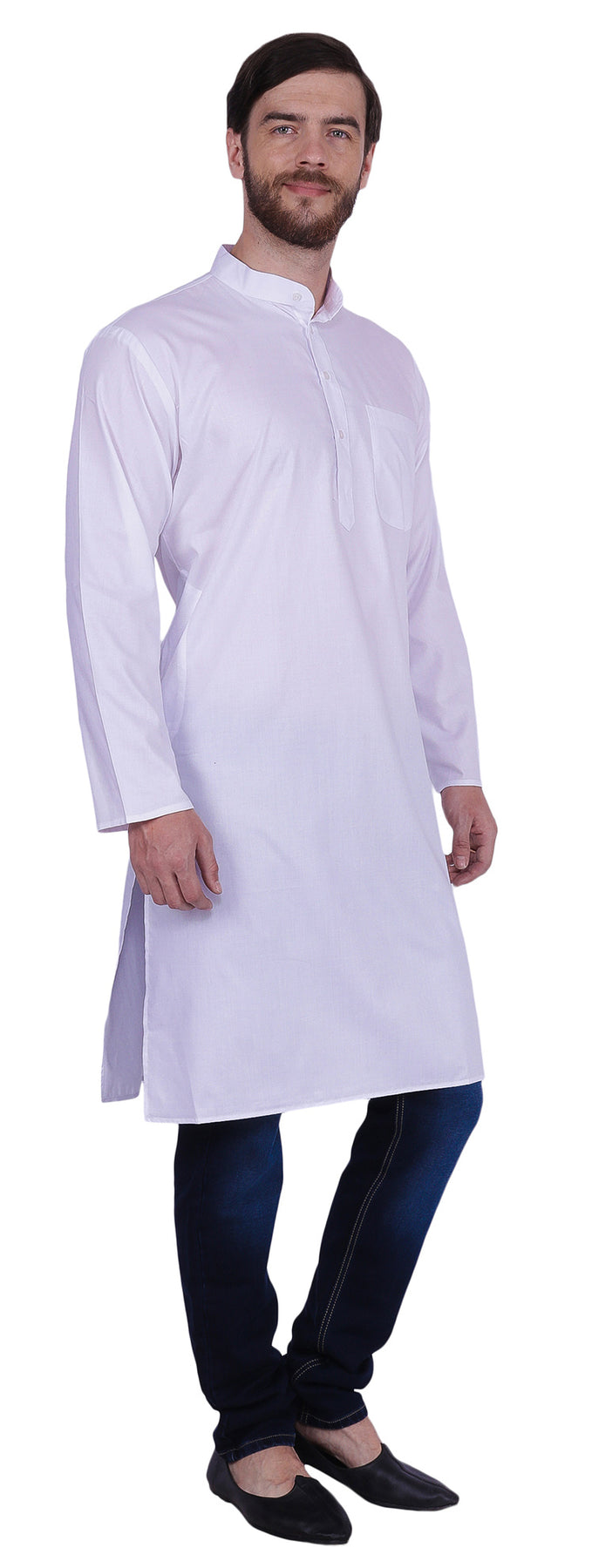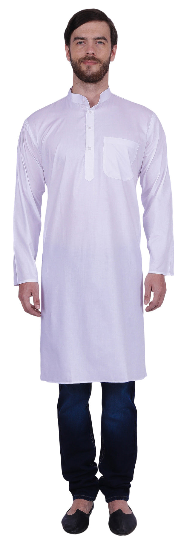 Traditional Men's Long Kurta Solid Color India Clothes (White)