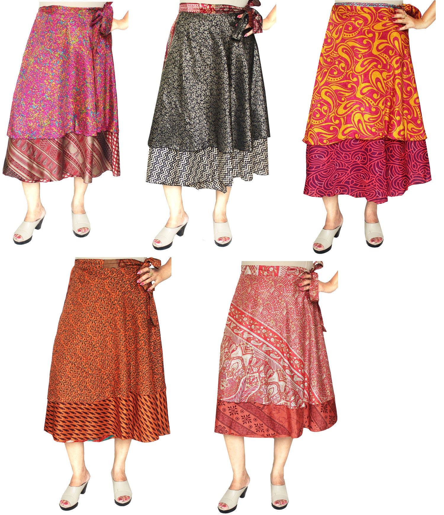 Wholesale 5 Pcs Lot Two Layers Women's Indian Sari Magic Wrap Skirt