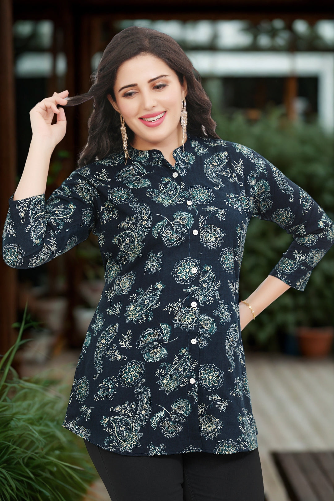 Add a refreshing pop of color to your wardrobe with this beautiful teal blue short kurti for women. Featuring vibrant prints and a neat mandarin collar, it offers the perfect blend of elegance and everyday comfort. Ideal for casual outings, workwear, or festive occasions, this kurti keeps you looking graceful and effortlessly stylish all day.