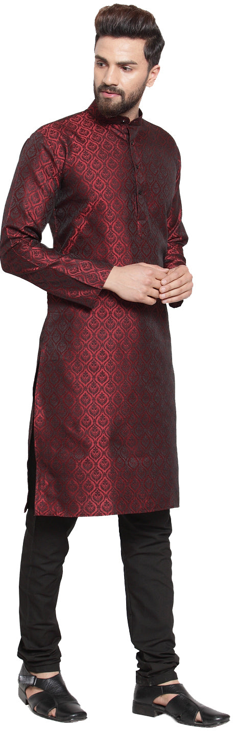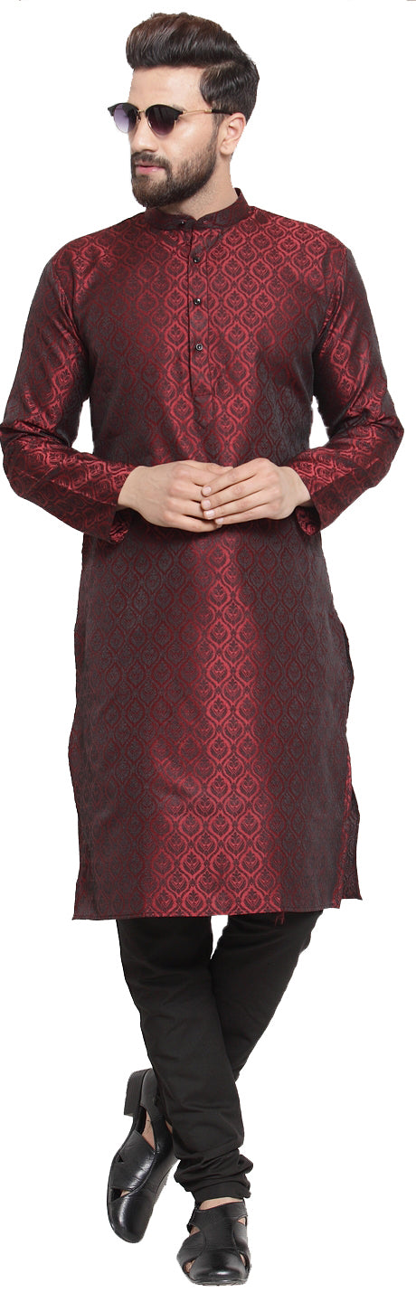 Indian Ethnic Jacquard Silk Men's Kurta Pyjama (Maroon)