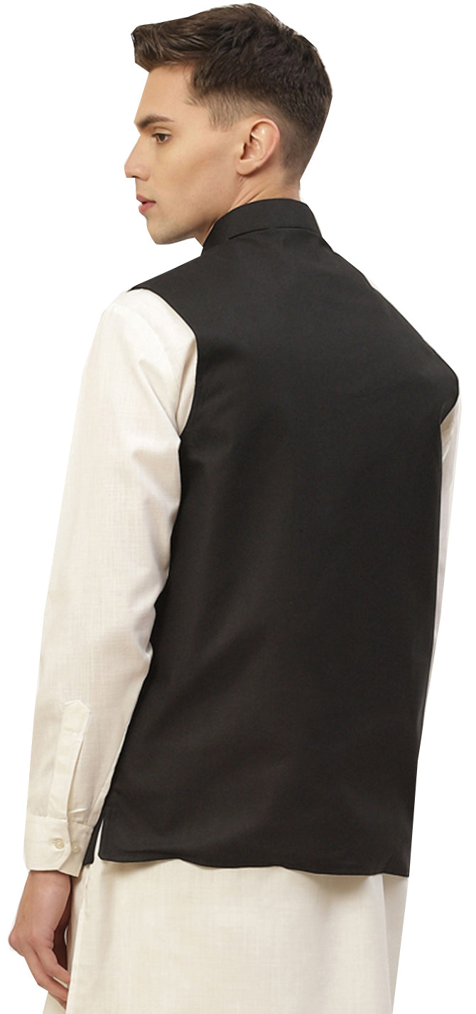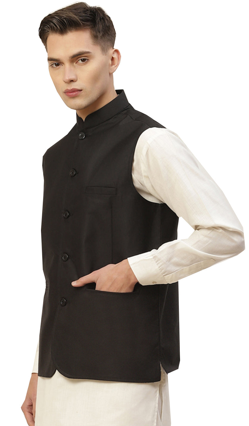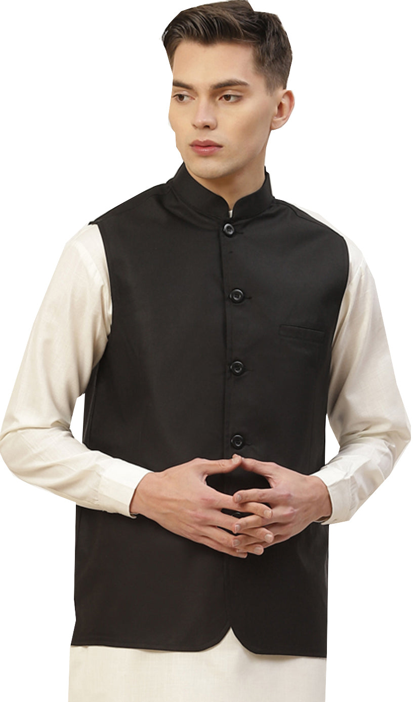 Classic Solid Color Black Jawahar Coat for Men in Premium Cotton (Black)