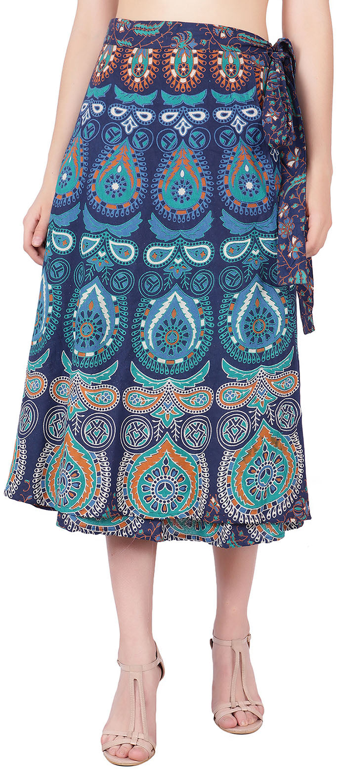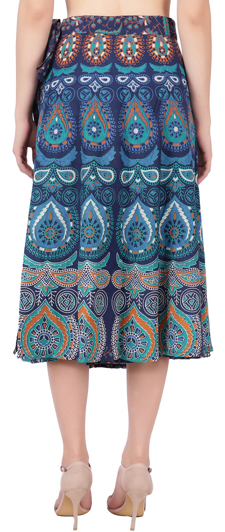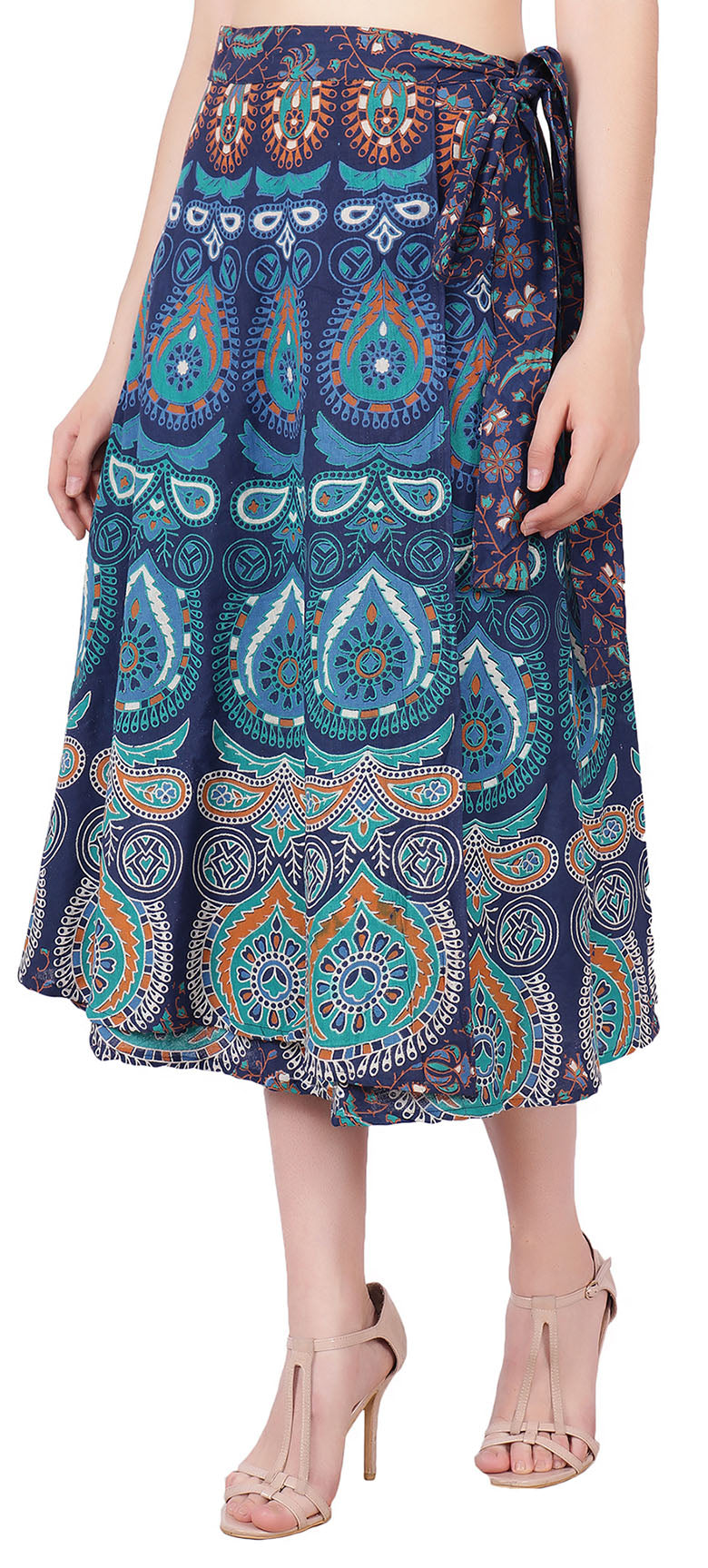 Beautiful Indian Skirt long wrap around for women with elegant hand block print on cotton fabric by the artisans of Rajasthan, India. This Indian wrap skirt can be worn with matching top and suitable for all occasions. These wrap skirts is ideal as beach wear / beach parties.