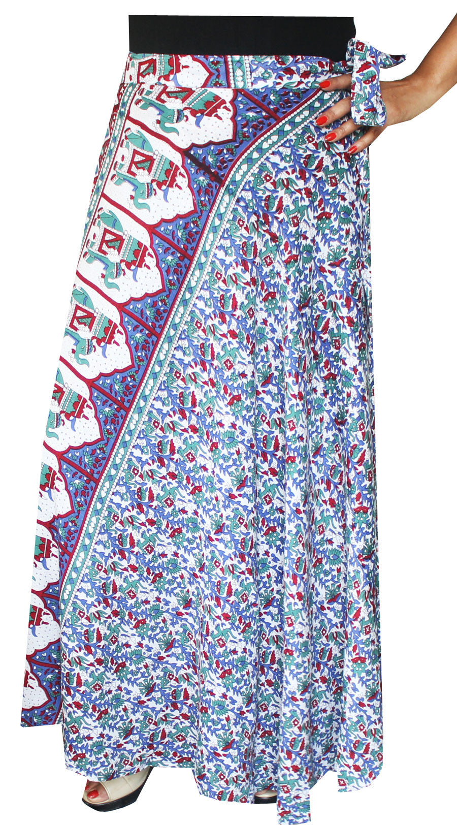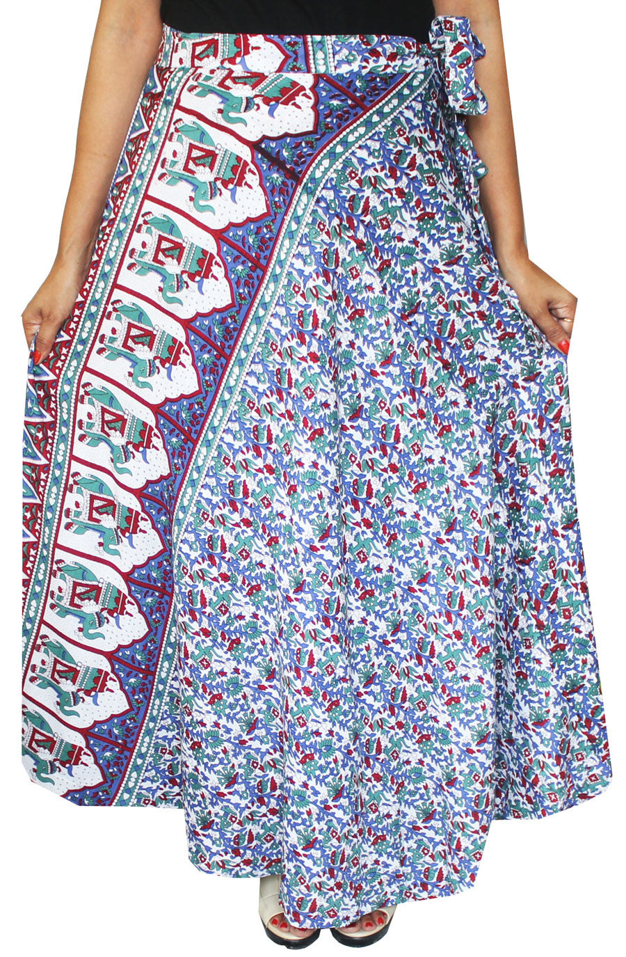 Beautiful Indian wrap around skirt for women with elegant hand block print on rayon fabric by the artisans of Rajasthan, India. This Indian wrap skirt can be worn with matching top and suitable for all occasions. These wrap skirts is ideal as beach wear / beach parties.