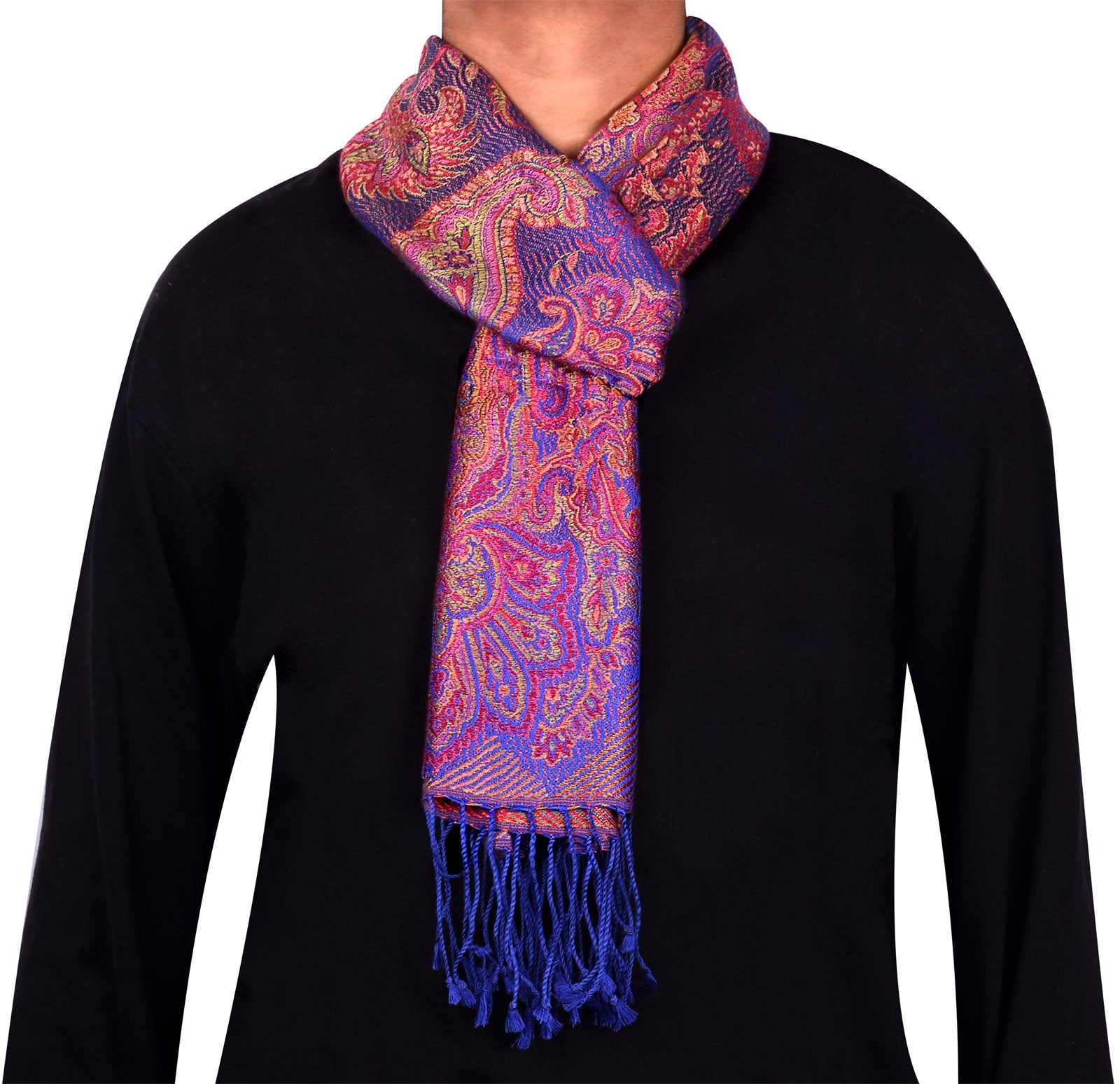 Indian traditional unisex neck paisley scarf muffler made of very soft wool and silk fabric by the weavers of Punjab, North India. Elegant accessory to be worn around the neck and very popular gift for men and women. The design is woven into wool silk fabric in earthy colors and can be worn both sides. (Dry Clean Only).