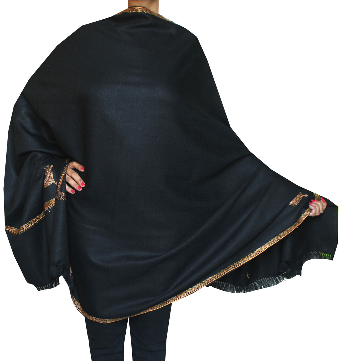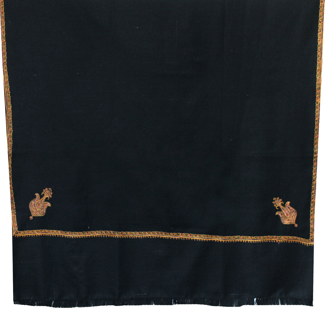 Women's Wool Indian Shawl Hand Embroidered Gift (Black)