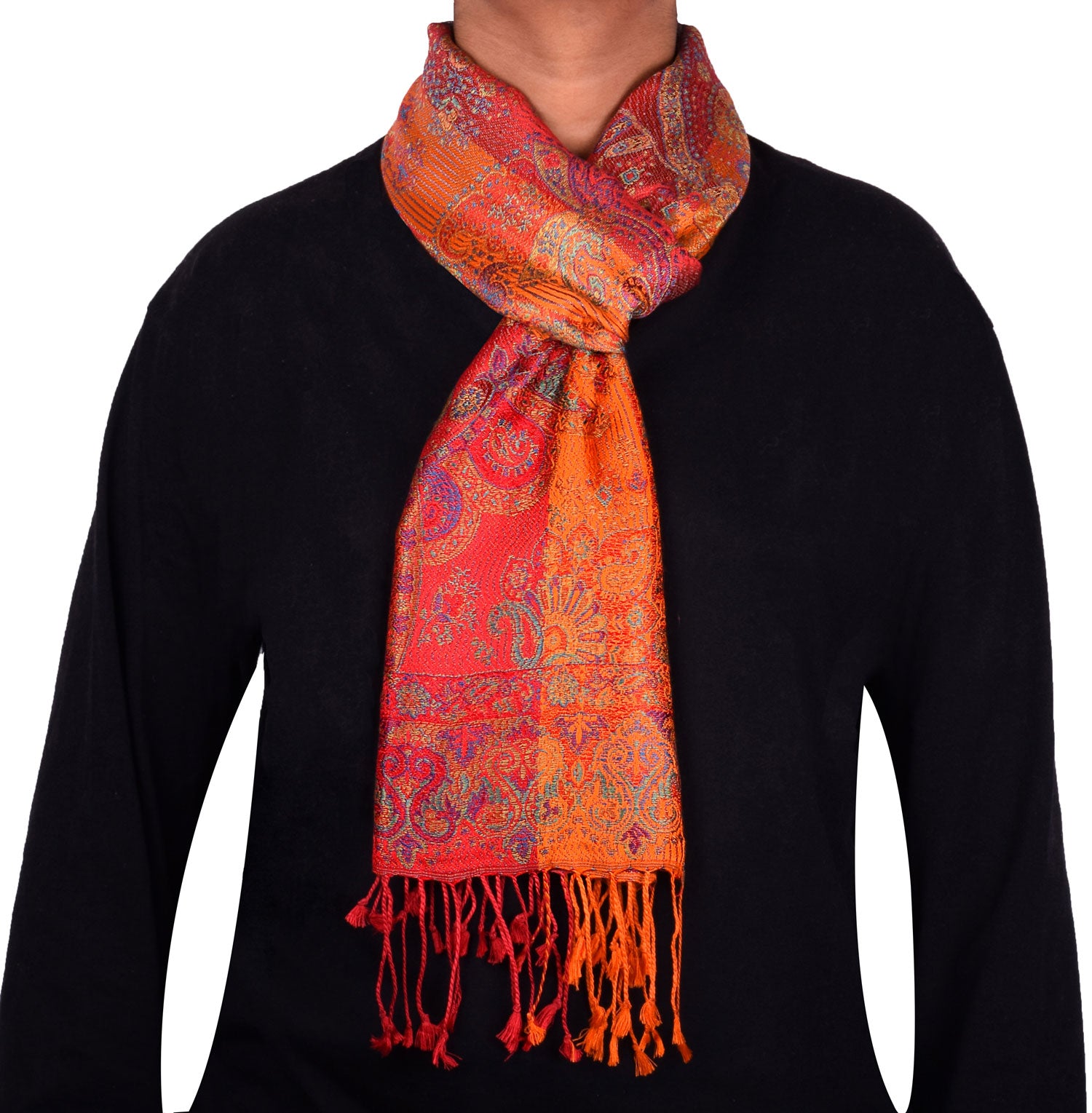 Indian traditional unisex neck paisley scarf muffler made of very soft wool and silk fabric by the weavers of Punjab, North India. Elegant accessory to be worn around the neck and very popular gift for men and women. The design is woven into wool silk fabric in earthy colors and can be worn both sides. (Dry Clean Only).