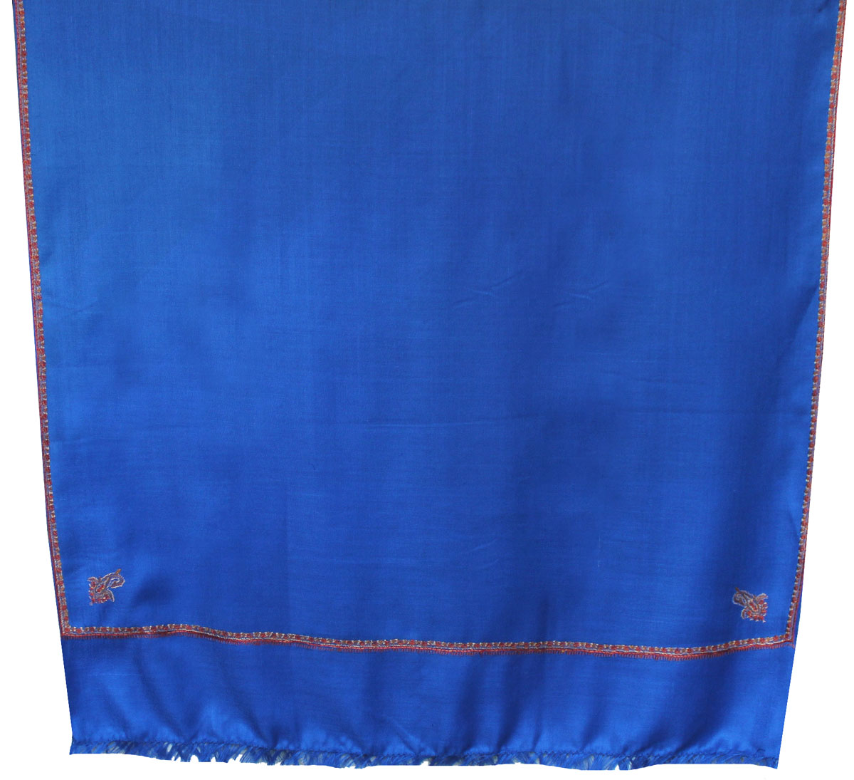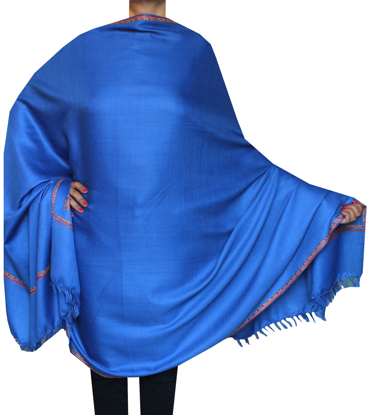 Woolen Indian Shawl Hand Embroidered Womens Gift (Blue)